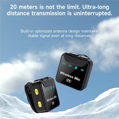 SX23 iP Interface Lavalier Mikrofon Støjreducerende Mini Trådløst Mikrofonsystem, 2 Mikrofoner + 1 Modtager【Avanceret Støjreduktion】Udstyret med støjreduktionsteknologi for klar og skarp lydoptagelse i forskellige miljøer.【Lydovervågning i realtid】HaLæs mere om produktet