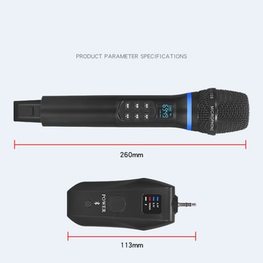Praktisk og kompakt: Den trådløse mikrofon er designet til brugervenlighed og bærbarhed og dens stilfulde, men kompakte design gør den meget nem at bære rundt på såvel som at installere, hvilket sikrer problemfri brug ved alle lejligheder.