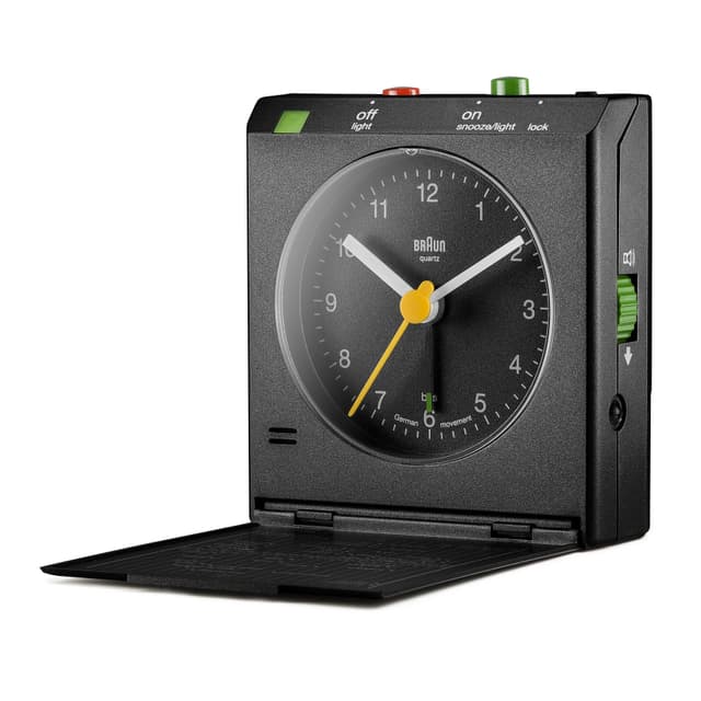 Dette refleks kontrol rejse alarm ur har en bevægelses aktiveret snooze funktion hvilket er en reflektion af braun's kerne filosofi om design og funktionalitet. Alle aspekter af dette ur har et formål, fra flip ned låget der har et verdens tidszone kort til lommelygten.