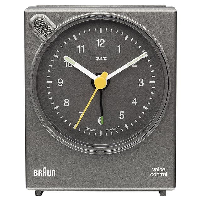 Dette stemmeaktiverede vækkeur fra braun måler 76mm x 63mm x 34mm og er tilgængeligt i tre farver. Det har et letlæseligt skive layout, stigende alarm, stemmeaktiveret snooze funktion og et stille og nøjagtigt tysk kvarts urværk. Duracell batterier er inkluderet.