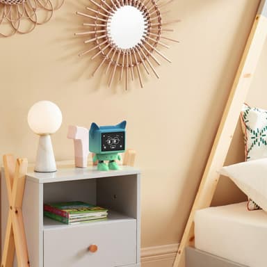 Start dagen med Dancing Clock, en unik kombination af et dansende vækkeur og en Bluetooth-højttaler. Det har originale ringetoner og en LCD-skærm, der viser følelser og giver dine morgener et legende præg. Uret har også en diffusor til hvid støj, der giver beroligende, afslappende øjeblikke. Med en batteritid på 6 timer sikrer det, at du holder dig til planen med tre tilpassede alarmer. Den kraftige lyd og de aftagelige ører gør det både funktionelt og sjovt og giver en perfekt blanding af hygge og innovation.