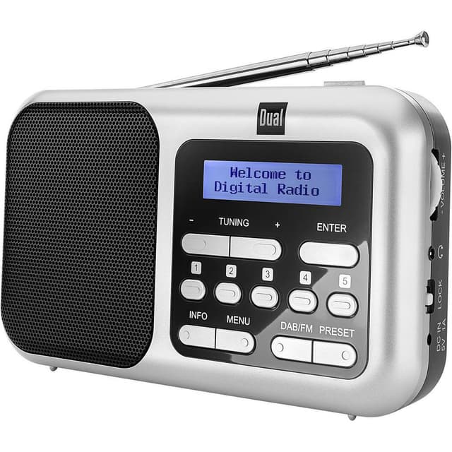 Med denne kompakte, bærbare radio af mærket Dual kan du ud over almindelige FM-radiostationer også modtage digitale radiostationer (DAB+). I kraft af den automatiske kanalsøgning hjælper enheden dig med problemfrit at finde en radiokanal blandt de tilgængelige digitale kanaler. Det betyder, at du kan nyde dit radioprogram i optimal digital kvalitet, og at du er godt forberedt på den nye standard. Derudover har apparatet hver 10 hukommelsespladser til dine favoritter samt 5 fasthukommelsesknapper. Takket være radioenhedens kompakte størrelse og muligheden for batteridrift kan den bruges til mange formål. Via hovedtelefontilslutningen (3,5 mm jack) på højre side af kabinettet kan du nyde din yndlingsmusik i ro og mag. Alle indstillinger til radioen - uanset om det er digitalt eller FM - gør brug af betjeningsknapperne på forsiden. Apparatet har desuden en knapsperr-funktion samt en udtrækkelig støtte for optimal seriøhed. OBS! Denne produktbeskrivelse er endnu ikke blevet oversat til dansk af vores oversættere. Derfor er teksten maskineoversat fra den tyske originaltekst.