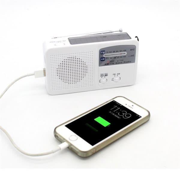 En optimal radio til alle situationer med indbygget lommelygte, nødsignal og nødlys. Radioen kan drives af forskellige strømkilder, den har et genopladeligt 500mA Li-ion batteri, solpanel og batterirum til 3 AAA batterier (medfølger ikke).