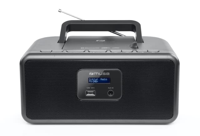 Muse M-32 DB (sort) er en fantastisk bærbar DAB + / FM-radio med: CD-afspiller, USB til MP-3 afspilning og en AUX-indgang. Muse M-32 DB (sort) er en fantastisk bærbar DAB + / FM-radio med: CD-afspiller, USB til MP-3 afspilning og en AUX-indgang. Med håndtaget er det en radio, der er let at bære fra et sted til et andet. M-32 DB sort har 20 forudindstillinger. 10 på FM og 10 på DAB +. + AC / DC.