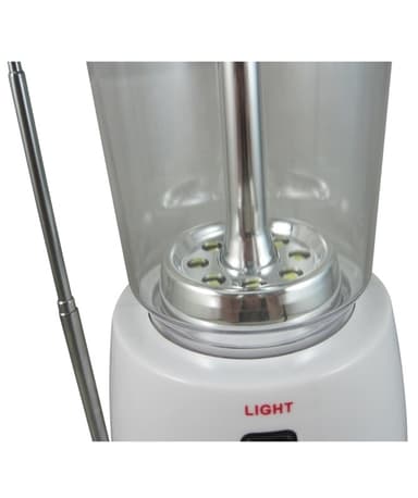 Du kommer aldrig til at mangle energi, undtagen i din arm, med denne lampe, som også giver dig mulighed for at lytte til radio og oplade din telefon eller lignende tilbehør.