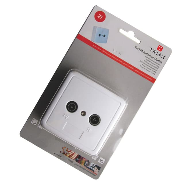 Triax Antenne Sat gennemgangsstikdåse med satellitoutput fra radio, fjernsyn og satellit til installering i monteringsskinnen.