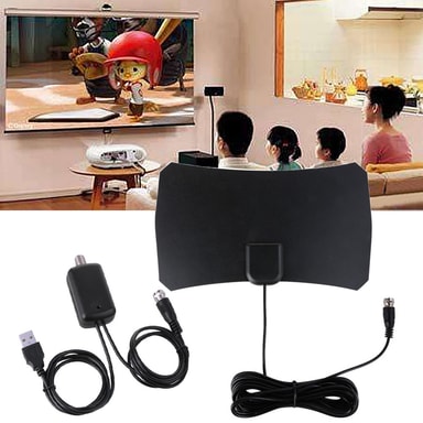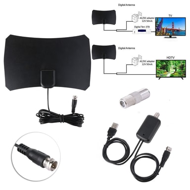 Indendørs antenne i supertyndt design, der er let at placere og installere. Kan let fastgøres med det medfølgende dobbeltsidede tape. Den kraftige forstærker sikrer bedre modtagelse selv i områder med dårligere signalmodtagelse. Inklusiv højtydende koaksialkabel med lav dæmpningsgrad.