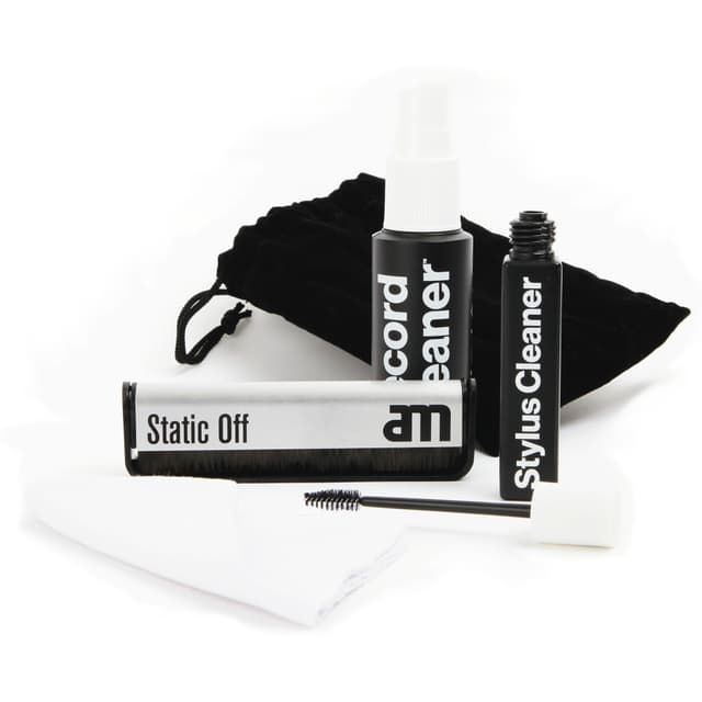 Dette kompakte sæt inkluderer en miniversion af AM Pladerenser, en pladerenserklud, den klassiske karbonfiber-pladebørste samt en pickup-børste til vådrens af pickup-nålen.