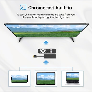 Denne Google-certificerede TV-stick GD1 giver dig 4K HDR-billedkvalitet og Android TV 14. Forvandl enhver TV til et moderne Smart TV og få lynhurtig adgang til streamingtjenester som Netflix, YouTube, Disney+, Prime Video, Paramount+ og Apple TV+. Den indbyggede Chromecast-funktion og Bluetooth-fjernbetjening med Google Assistant gør brugen enkel og bekvem.