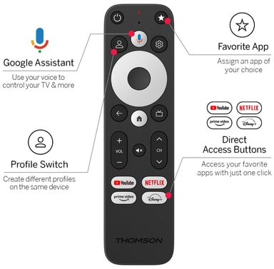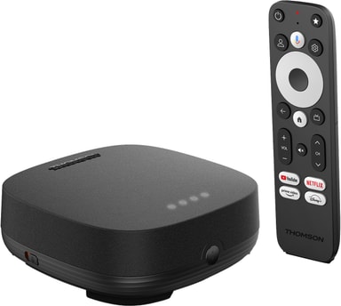 Løft din tv-oplevelse med Thomson 4K UHD streaming-enheden som byder på 4K UHD-opløsning, Dolby Atmos, Dolby Vision og er drevet af Google TV med den nyeste Android-version og adgang til et stort udvalg af streaming-platforme.Læs mere om produktet