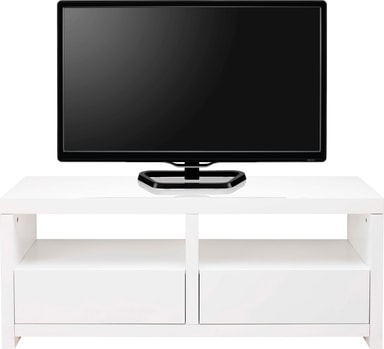 Arkitect TV-bord A120WG14 i hvidt trædesign med 2 hylder til AV-udstyr samt 2 store skuffer til opbevaring.