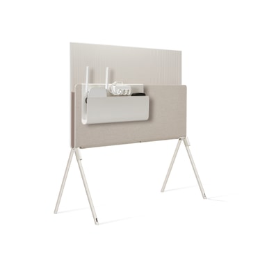 Når du kigger bag dit tv, vil du ikke se et rod af tilbehør og kabler. Beholderen til kabler og tilbehør holder orden i alting og er skjult bag Clean Cover, så der er uforstyrret udsyn. Og med to aftagelige kabelholdere kan du skjule ledningerne langs Posés ben, så du kan fuldende dit pæne interiør.