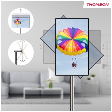 Oplev et nyt niveau af frihed med Thomson Go Plus 32" UHD smart-skærm. Designet til at følge med dig leverer denne store, bærbare touchskærm krystalklare 4K-billeder, hvor du end har brug for det. Med indbygget batteri, justerbar højde og glatte hjul passer den perfekt ind i ethvert rum, opgave eller øjeblik i din dag.