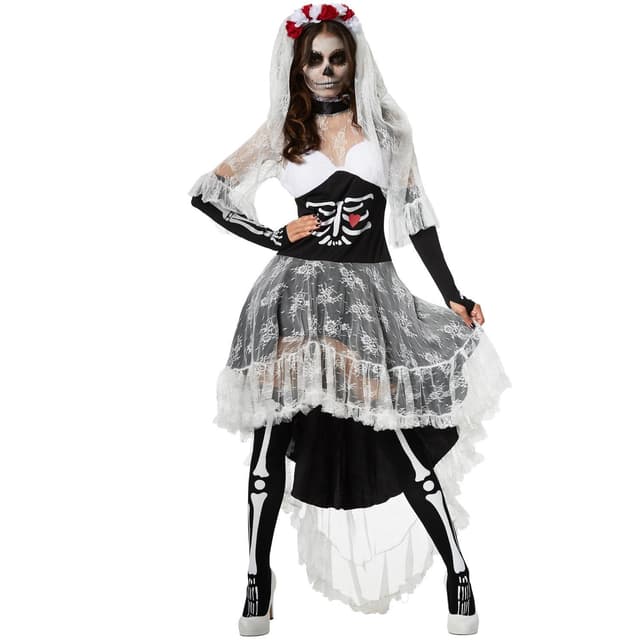 Dette er et Marketplace-produkt. Et produkt, som sælges af vores partner og kun er tilgængeligt i netbutikken. Hvis du ønsker at returnere et Marketplace-produkt, skal du kontakte den partner, som har solgt produktet. Produktet kan ikke sendes retur til Elgiganten eller returneres i vores butikker. Elgiganten A/S er alene formidler af produktet. Aftaleparter og sælger af produktet er:195.-156.-Ekskl. momsKun online | Leveret af vores Partner861298Halloween skelet-brud kostume - M